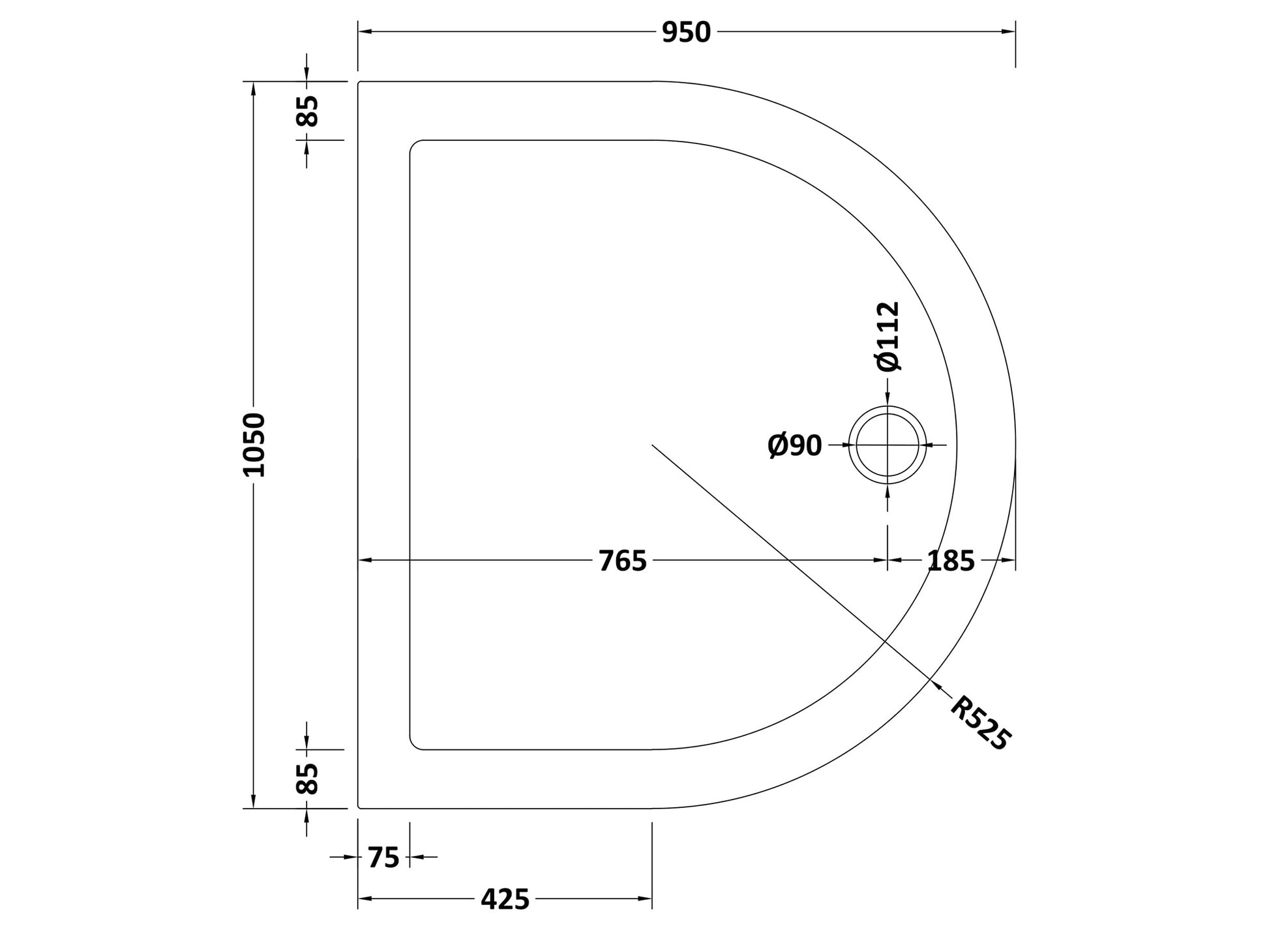 Pearlstone Matrix D-Shaped Shower Tray 1050mm: Elegant Curved Design